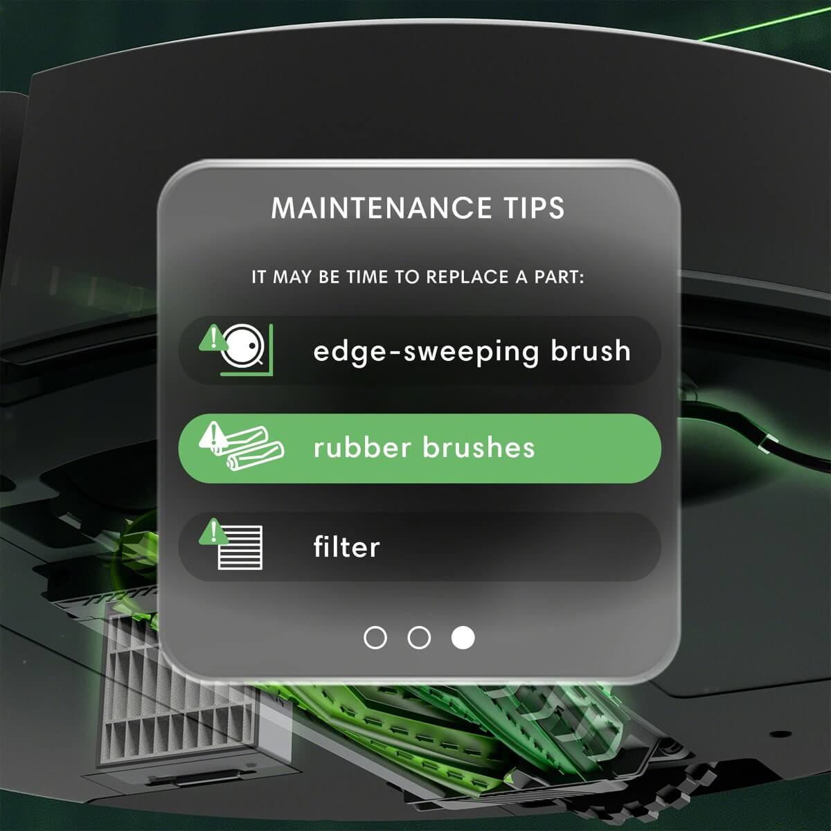 Roomba Max 705 Vac оснащений подвійними гумовими щітками, що запобігають намотування волосся, і технологією Dirt Detect, яка виявляє найбрудніші ділянки для більш ретельного прибирання. Потужність всмоктування підвищується до максимального рівня завдяки функції Carpet Boost, що ідеально підходить для глибокого очищення килимів. Інтелектуальні сенсори та можливість керування через мобільний додаток Roomba® Home дозволяють легко налаштовувати графік прибирання та контролювати пристрій дистанційно. Система мікрофільтрації затримує частинки розміром до 0,7 мікрона, що особливо важливо для алергіків.